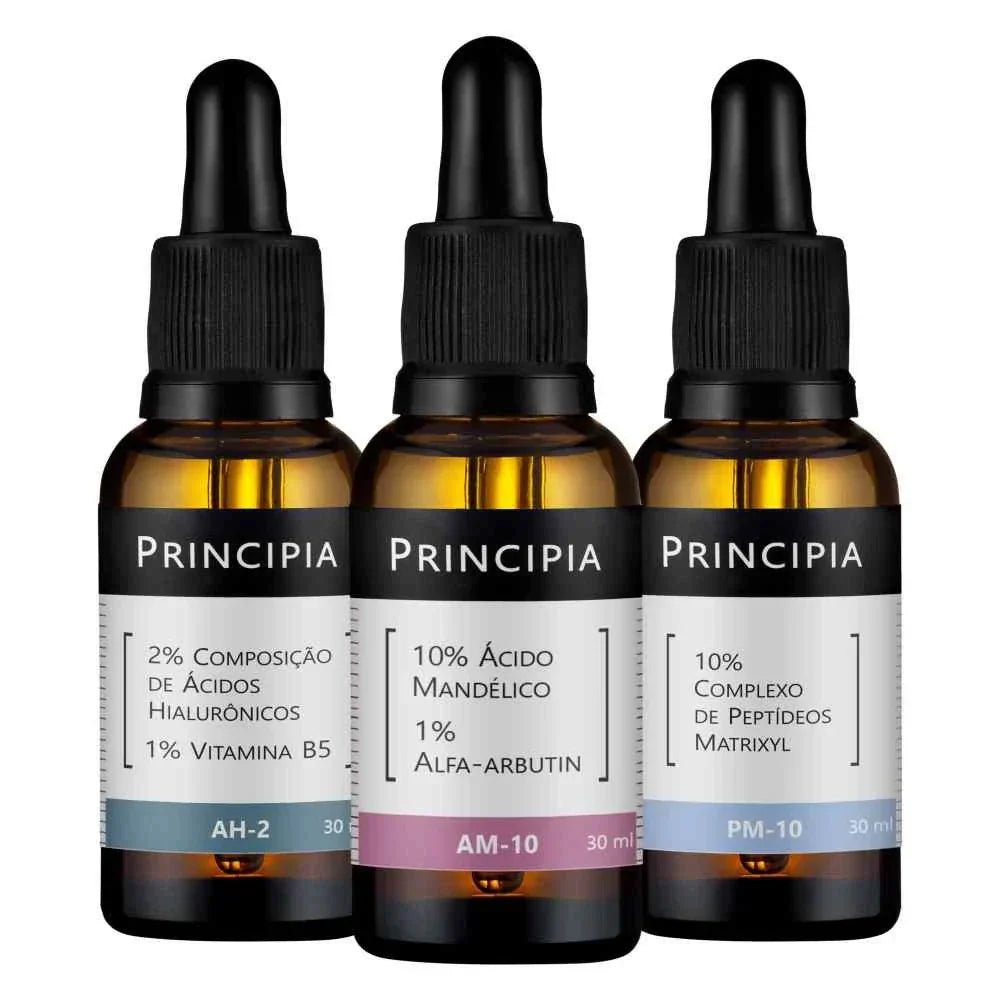 Kit com um sérum com 10% de Ácido Mandélico + 1% de Alfa-arbutin, um sérum com 10% de Peptídeos Matrixyl e um sérum com 2% de Ácidos Hialurônicos + Vitamina B5