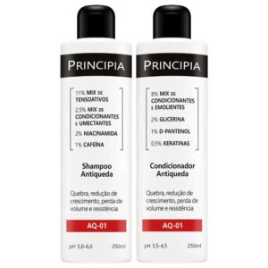 Kit com dois produtos para cuidados com o cabelo: um shampoo anticaspa com 13% de Mix de Tensoativos + 2% de Ácido Salicílico + 1% Piroctona Olamina e 1% PCA Zinco, com alta eficácia na redução da caspa persistente, controle da oleosidade e da coceira e um sérum capilar com 3% de Baicapil + 3% de Cafeína e 2% de Beauplex indicado para redução da queda e crescimento do cabelo.